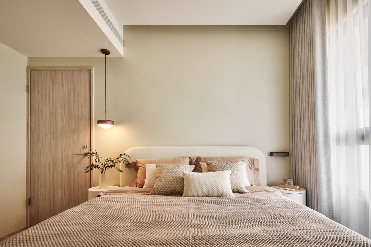 因著業主喜愛奶油色系,以此為基底大面積鋪墊,擴展視覺效果,形塑舒適無壓氛圍,讓男女主人無論在生活起居或照看孩子時,都能感到放鬆自適。